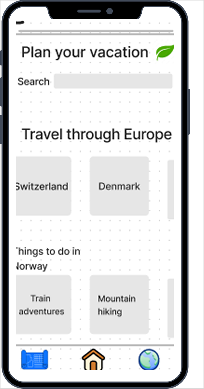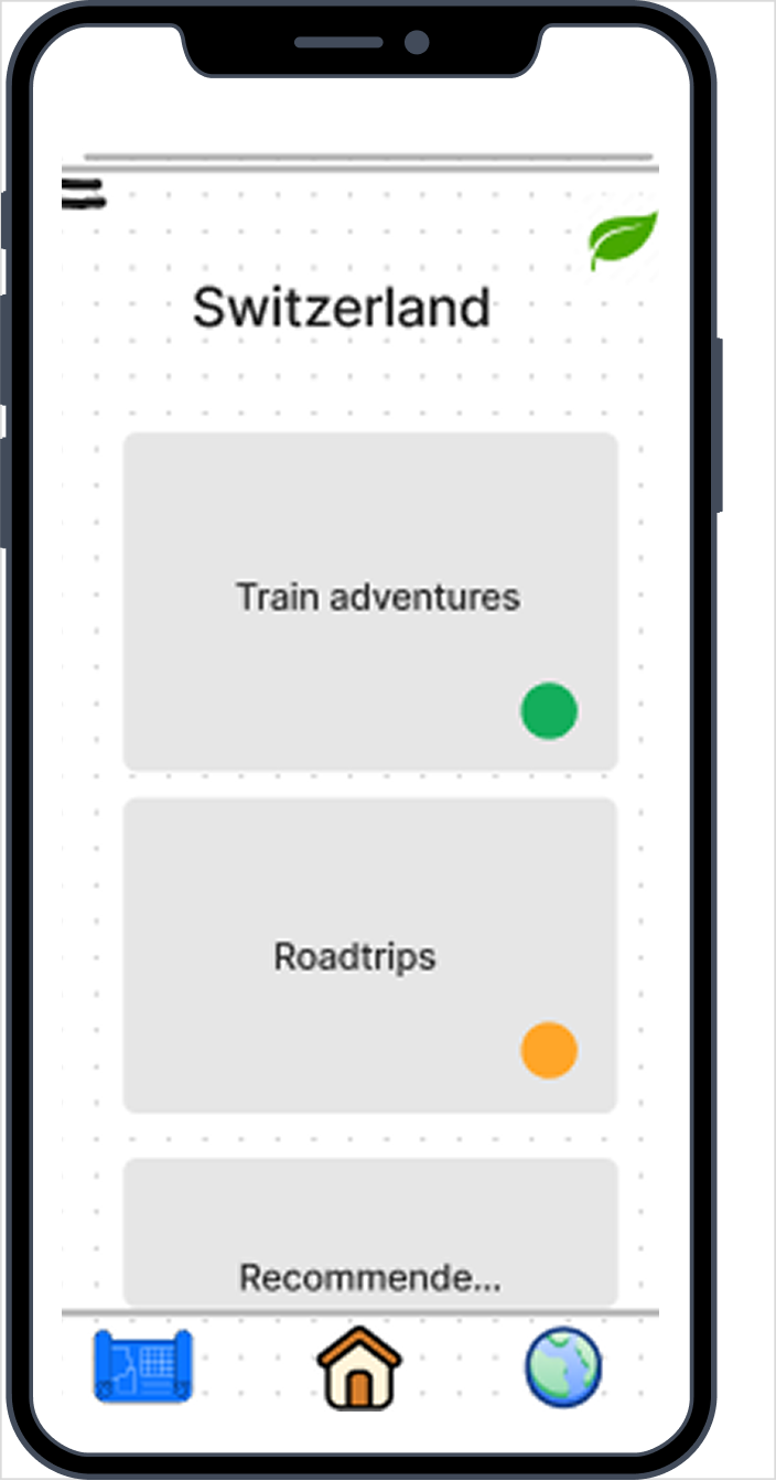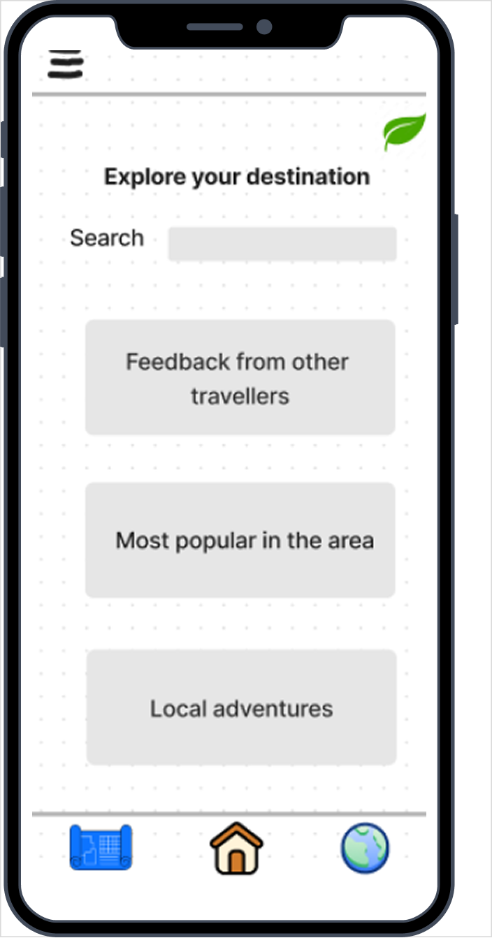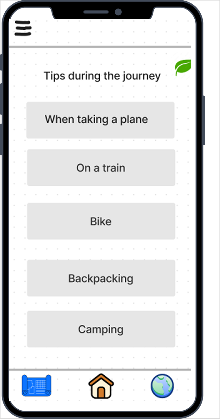Based on the research insights, the interface was designed to help travelers easily discover sustainable transportation options, local experiences and travel tips throughout their journey.