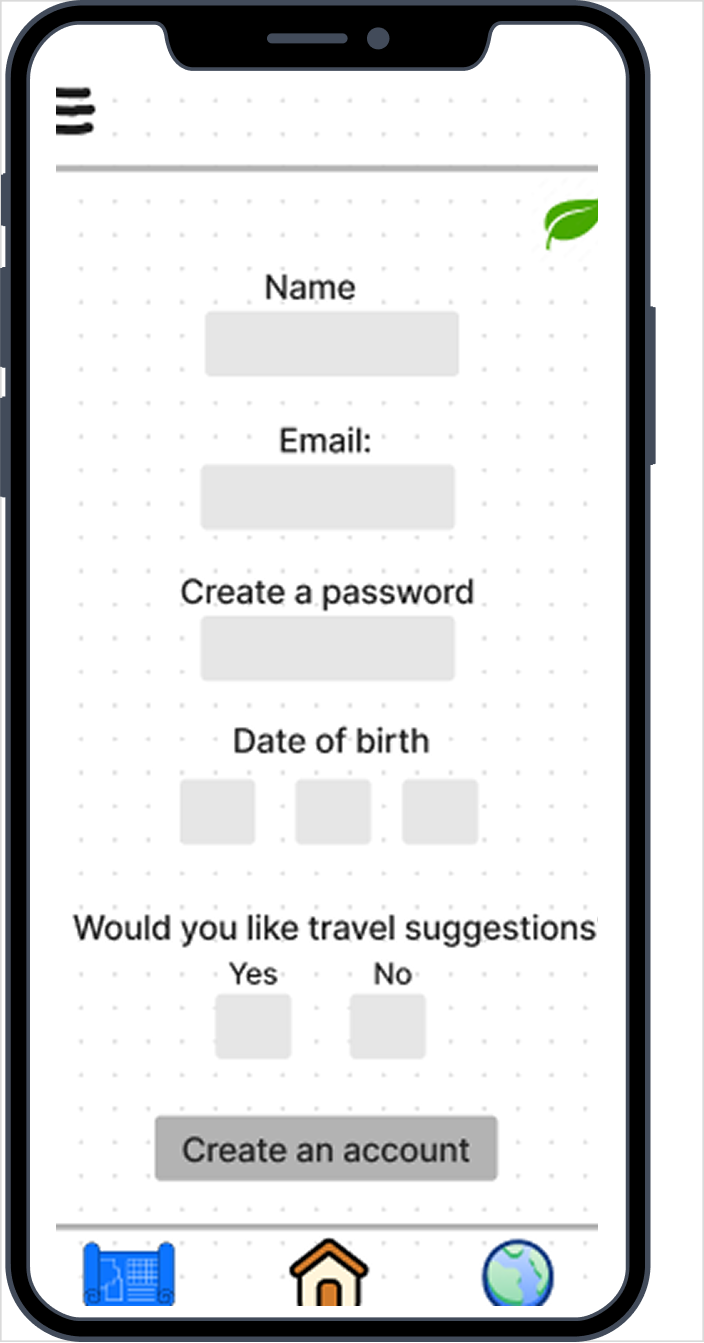 Simple account creation allowing users to personalize travel recommendations.