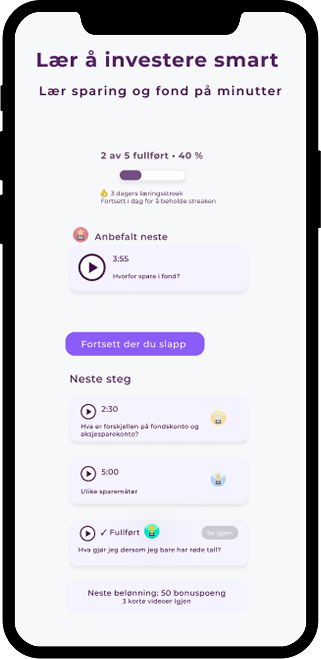 A UX concept exploring how financial education, gamification and clearer financial insights can help beginner investors feel more confident when starting to invest.